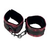 Мягкие дизайнерские оковы на запястья из чувственной премиум-коллекции эротических аксессуаров Scandal. С внутренней стороны отделаны приятным бархатистым материалом, исключающим нежелательный дискомфорт и раздражение кожи. С внешней стороны оковы декорированы дизайнерским рисунком из блестящих красных нитей. Фиксируются и затягиваются на запястьях посредством липучек. Крепятся и снимаются с помощью универсальных карабинов.