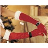 Перчатки длинные из искусственного бархата с опушкой и помпонами из искусственного меха. На запястье черные ремешки с пряжками из искусственной кожи.