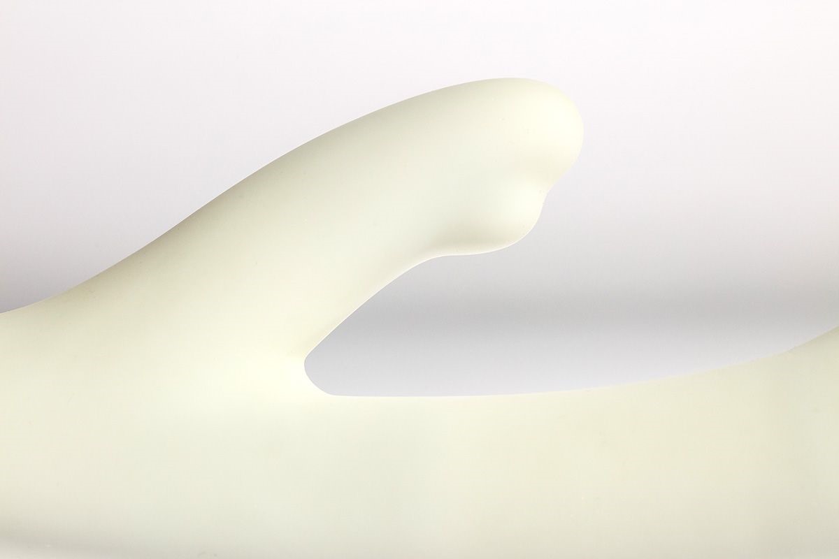 Белый перезаряжаемый вибратор Due с клиторальным отростком - 22 см.