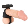 Чёрное эрекционное кольцо с подхватом мошонки и вибростимулятором