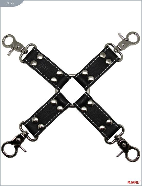 Крестовина с карабинами и манжеты для рук и ног из чёрной кожи