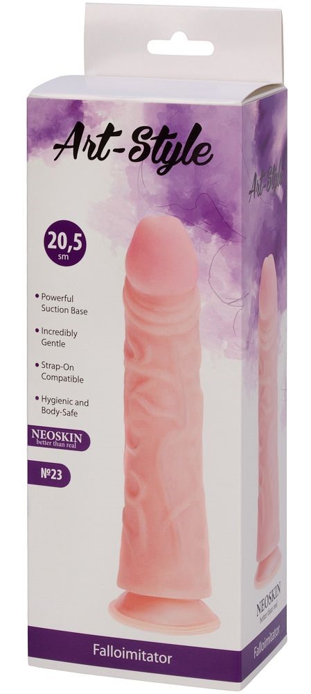 Упругий и рельефный фаллоимитатор на присоске ART-Style №23 - 21,5 см.