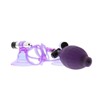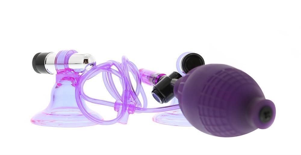 Женский помпа для груди в виде небольших колбочек крепится на соски, а также обладает вакуумным эффектом и вибрацией. Для того чтобы задействовать помпочки, их нужно приложить к соскам и начать откачивать воздух. Для лучших ощущений используйте вибрацию Батарейки в комплекте.