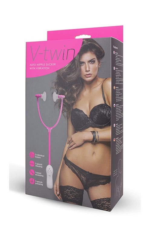 Вакуумный массажёр для сосков V TWIN AUTO NIPPLE SUCKER WITH VIBRATION. Вакуумные присоски для сосков с турбо вибраторами, пульт управления вибрацией выносной. Закрепите зажимы-присоски на сосочках, и регулируйте вибрацию по вашему желанию.