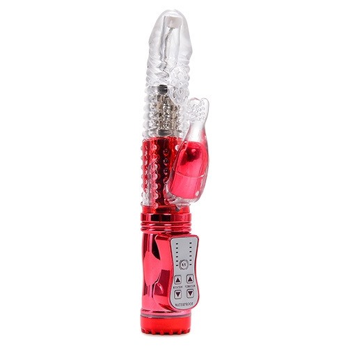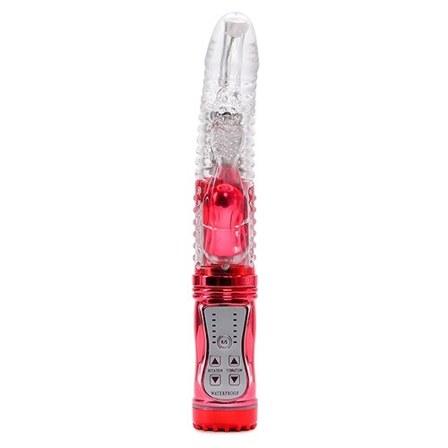 Великолепный многофункциональный хай-тек вибратор. Изготовлен из ТПЕ, имеет рельефную поверхность и ярковыраженную головку. Клиторальный отросток в виде сердечка с пупырышками для дополнительной стимуляции. Имеет 12 режимов вибрации, пульсации и ротации, скорость которых удобно упраляется кнопками на рукояти игрушки. Работает от трех батареек типа ААА (нет в комплекте). Общая длина - 22,,5 см, рабочая длина - 12 см, диаметр - 3 см. Длина отростка - 6 см, диаметр - 2,5 см.
