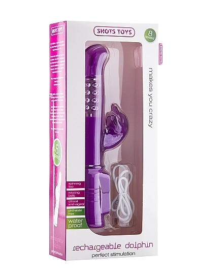 Многоскоростной вибратор пурпурного цвета с режимами вращения ствола и мощным клиторальным стимулятором в виде дельфина. Имеется возможность менять направление вращения (направо-налево). Мягкий, имеет гладкую поверхность. Внутри ствола расположены металлические шарики. Водонепроницаемый. Материал - ТПЕ, АБС. Имеет 8 режимов вибрации, управление производится при помощи кнопок у основания игрушки. Общая длина - 22,5 см, рабочая длина - 11 см, максимальный диаметр - 3 см, длина клиторального отростка - 6 см, диаметр - 3 см. В комплекте USB провод. Упаковка: картонная коробка.