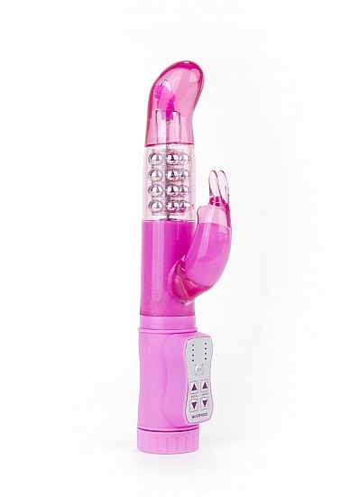 Многоскоростной вибратор розового цвета с режимами вращения ствола и мощным клиторальным стимулятором в виде зайчика. Имеется возможность менять направление вращения (направо-налево). Мягкий, имеет гладкую поверхность. Внутри ствола расположены металлические шарики. Водонепроницаемый. Материал - ТПЕ, АБС. Имеет 8 режимов вибрации, управление производится при помощи кнопок у основания игрушки. Общая длина - 23,5 см, рабочая длина - 11 см, максимальный диаметр - 3,3 см, длина клиторального отростка - 7 см, диаметр - 2,3 см. В комплекте 4ААА батарейки. Упаковка: картонная коробка.